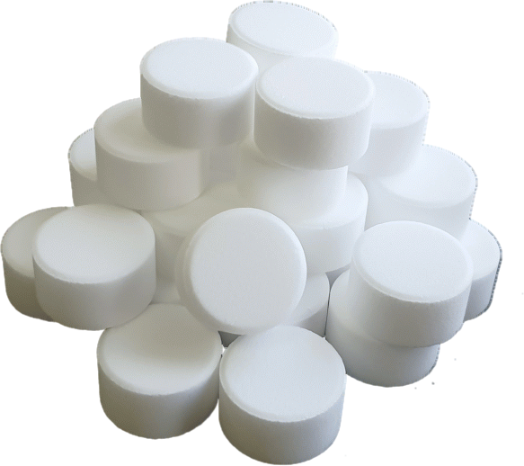 Высокая механическая прочность: Таблетки не крошатся при транспортировке и засыпке, что минимизирует образование солевой пыли, которая может засорить систему.